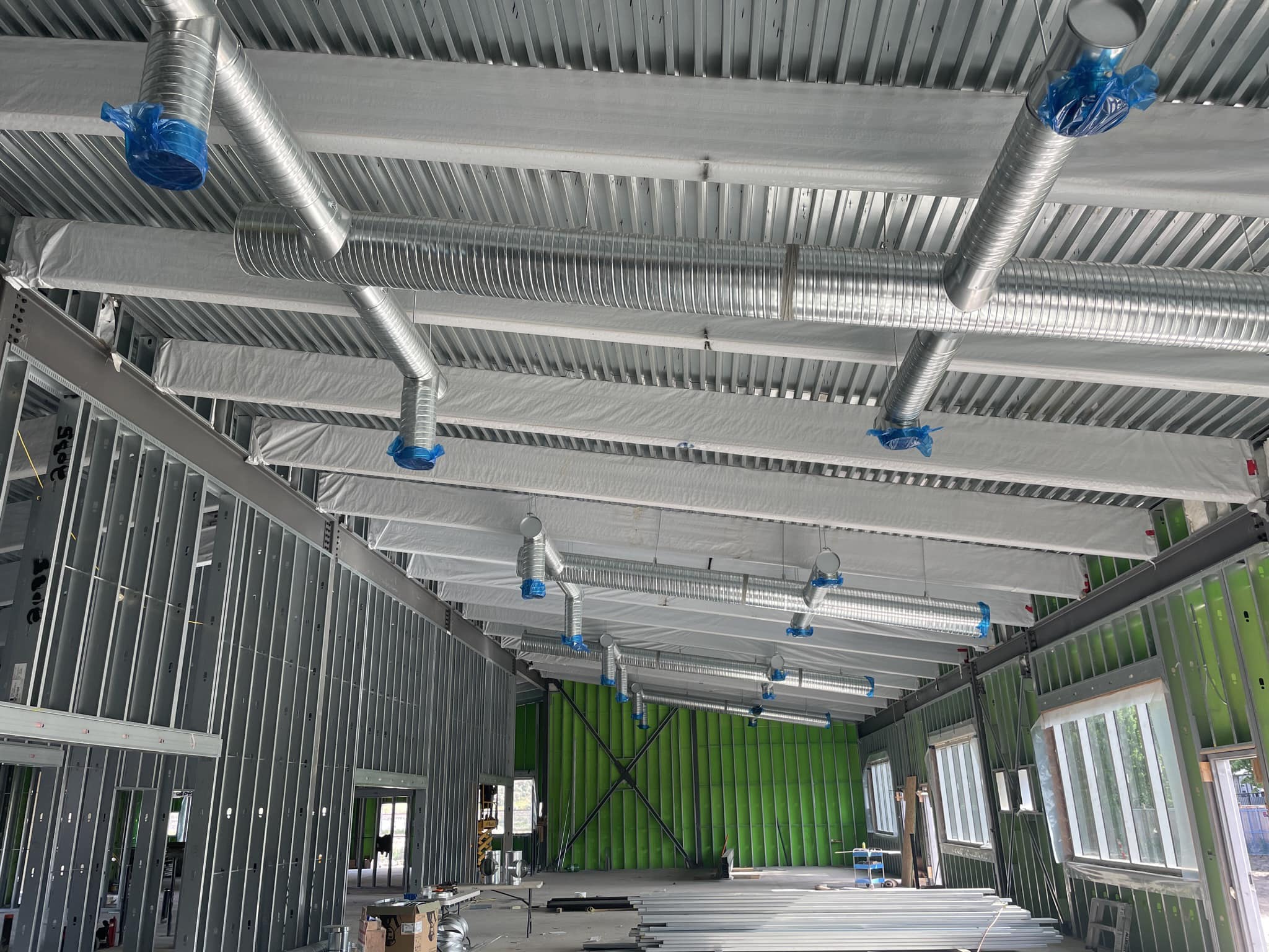 For residential HVAC, we provide custom duct design, fabrication, and installation for efficient heating and cooling. Our systems are available in both sheet metal and fiberglass options, built to meet standards for energy efficiency and code compliance. We also offer residential gas fitting services, including the fabrication and installation of vent hoods, flues, and exhaust vents using durable materials like sheet metal, copper pans, and roof curbs commonly used in bathroom or dryer ventilation systems.